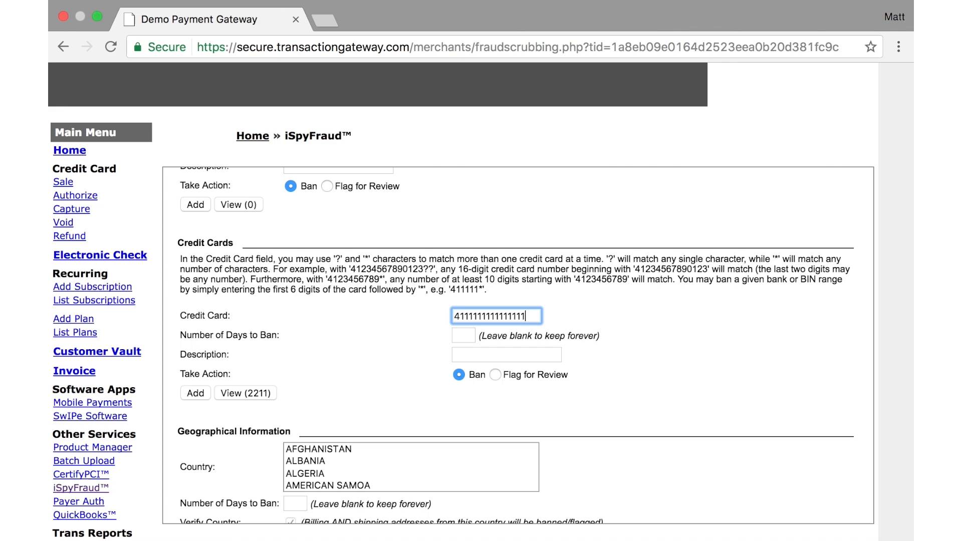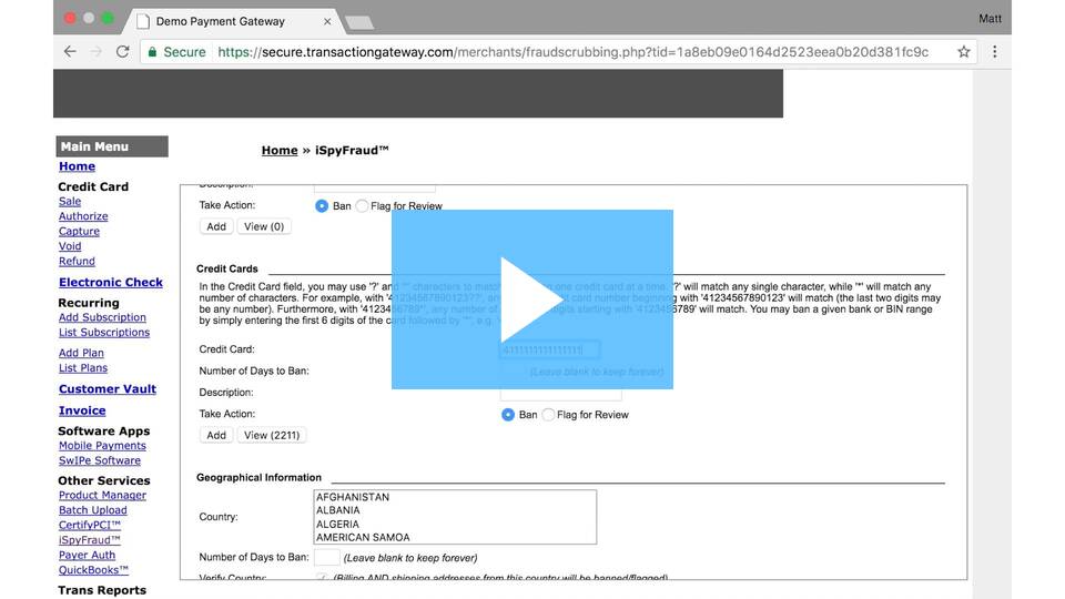 - Set rule-based parameters for transactions, defining things such as: transaction volume per user, maximum amount charged in one transaction, and more.