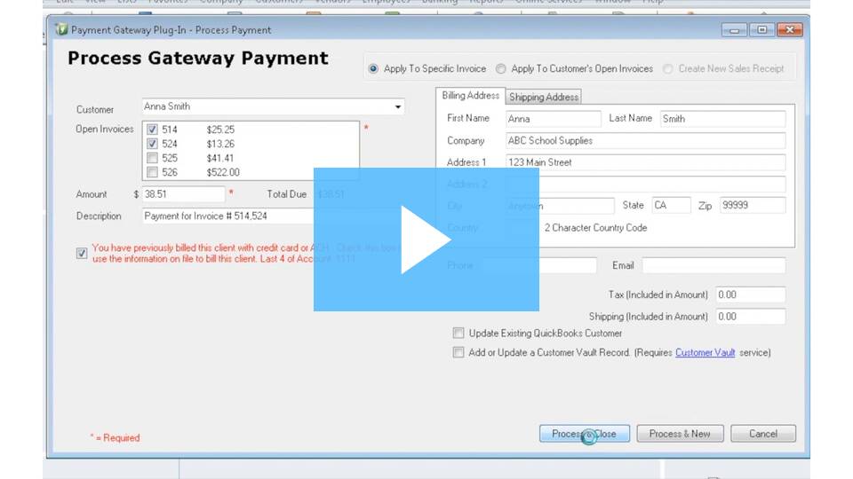 QuickBooks™ SyncPay eliminates double entries and handles the transactions from start to finish. From processing the transaction to creating the appropriate accounting entry to marking the transaction as paid, QuickBooks™ SyncPay will handle it all from within the QuickBooks environment.