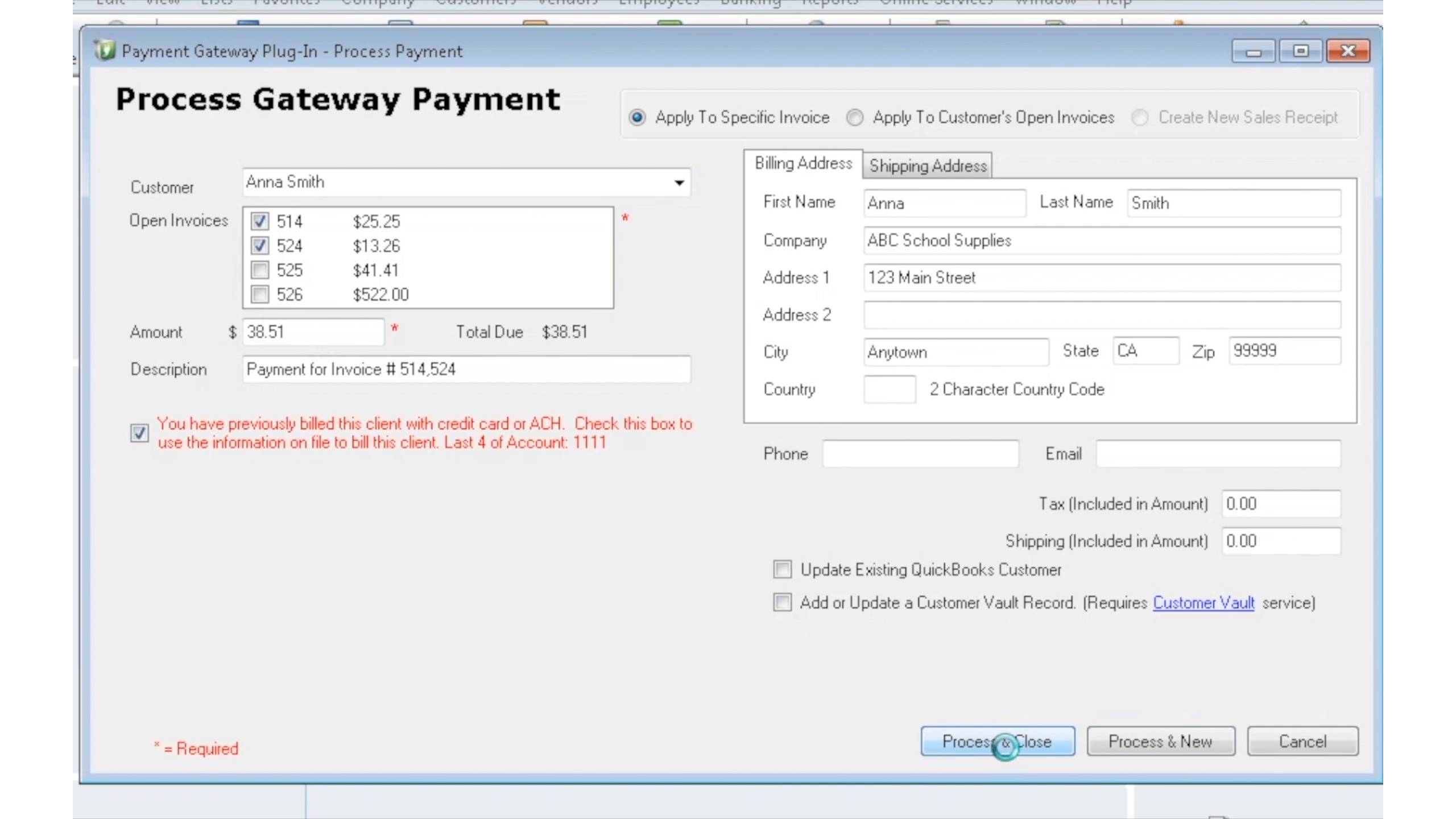 QuickBooks™ SyncPay eliminates double entries and handles the transactions from start to finish. From processing the transaction to creating the appropriate accounting entry to marking the transaction as paid, QuickBooks™ SyncPay will handle it all from within the QuickBooks environment.